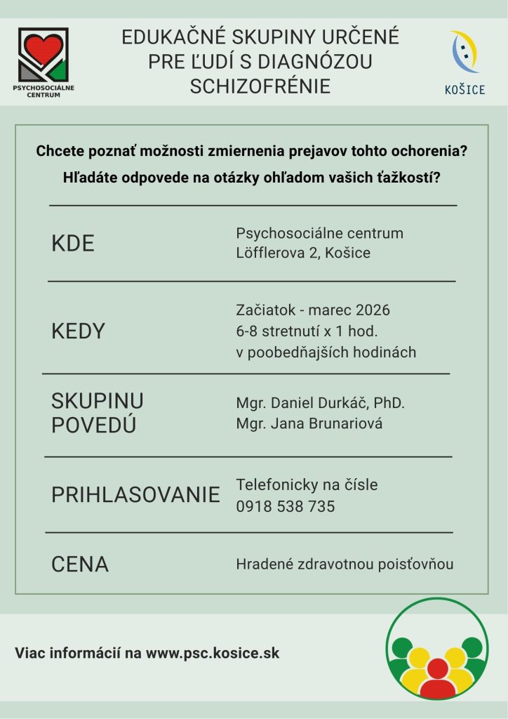 Edukačná skupina je priestorom, kde môžete bezpečne hovoriť o svojich ťažkostiach, pýtať sa na to, čomu nerozumiete, a ujasniť si informácie o ochorení.
