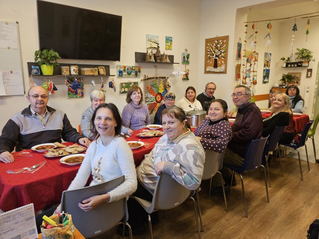 Spoločná vianočná kapustnica je v stacionári každoročnou tradíciou a klienti sa na ňu vždy tešia. Hoci u nás bežne obedujú spoločne, pri tejto príležitosti je prestieranie sviatočnejšie a jedlo sa stáva príležitosťou na stretnutie, zdieľanie zážitkov a chvíle pokoja.